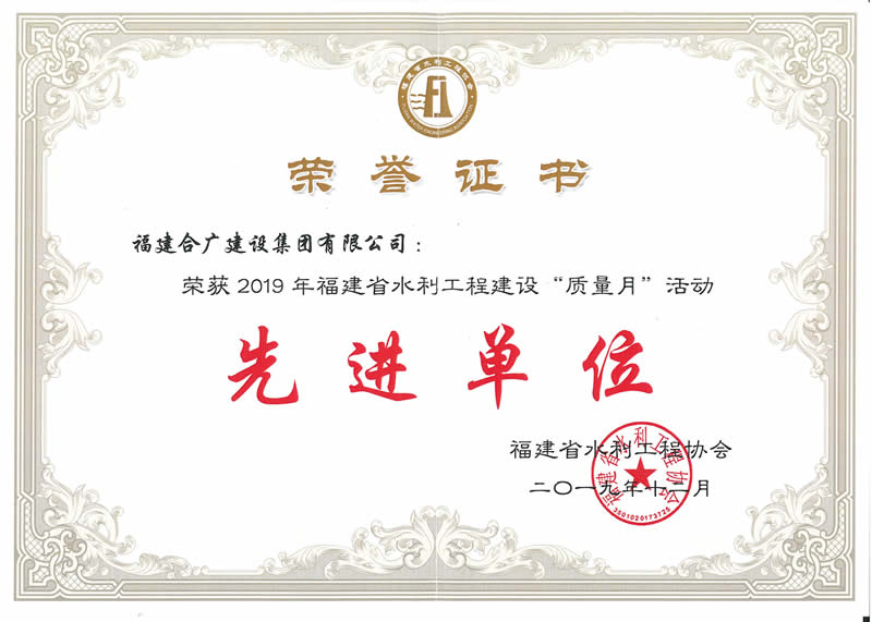 • 2019年福建省水利工程質(zhì)量月榮譽(yù)證書